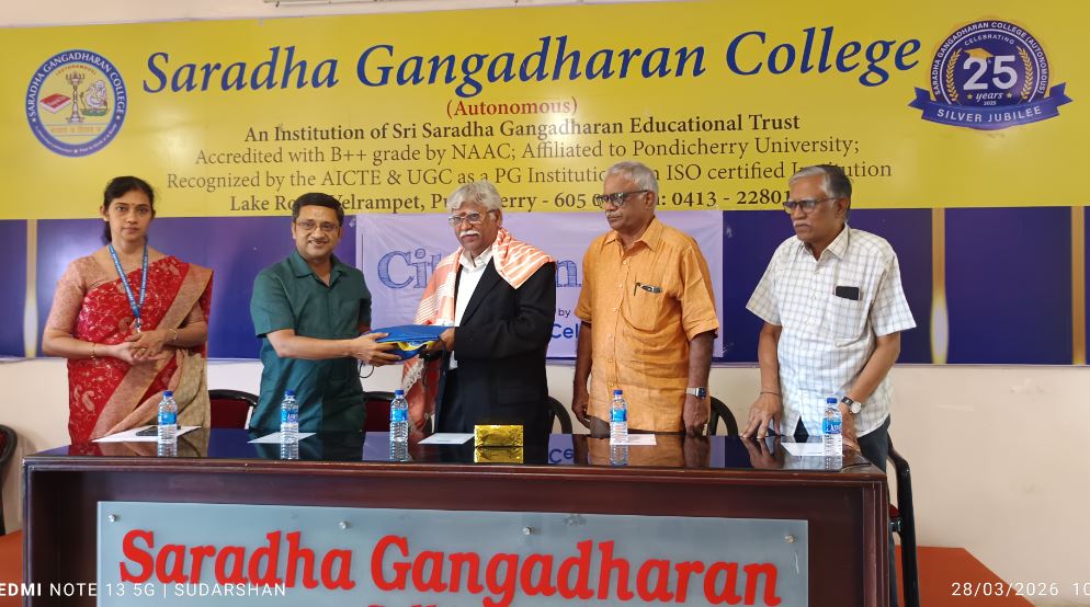 I’m delighted to learn that you are keen to study at our Saradha Gangadharan College. Studies serve for delight, for ornament and for ability. Natural abilities in you are like natural plants that need pruning by study. Choosing a college for study is an important stage in your academic life and more so, it is vital to give careful thought in selecting the subjects you are going to study. Our college is far from the world of gimmick and glamour and has a peaceful and harmonious atmosphere which enables you to experience the wisdom and knowledge you intend to acquire, in a joyous way.