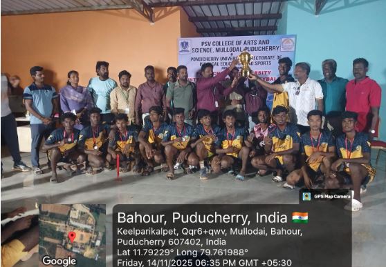The Pondicherry University Inter-Collegiate Men's Volleyball Tournament for the year 2025-26 was organized by PSV Arts and Science College, featuring 31 teams. SGC Volley Ball team won the Third Place in the competition.