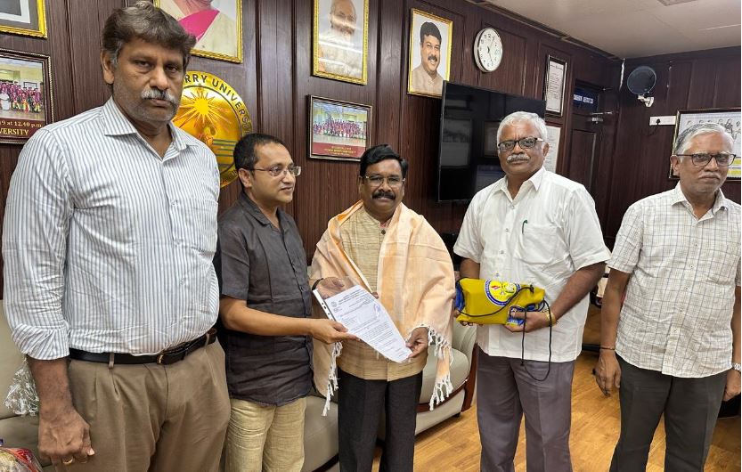 Dr. S. Pazhaniraja, Vice Chairman,Saradha Gangadharan College, Pondicherry has receiving the conferment of autonomous status order from the Honourable Vice Chancellor, Pondicherry University on 16.07.2025.