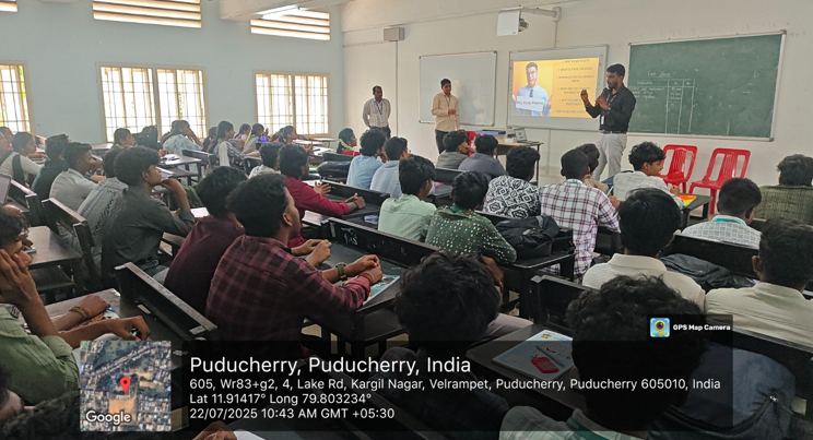 Placement Cell organised a Guest Lecture on “Progress Infinity” on 24th Feb2023, Friday for the second and third year students of Saradha Gangadharan College. Mr. Karn Parekh, CEO, Auro Innovations, Puducherry addressed the students. He spoke on the career decisions, career beyond limits, decision making process etc.