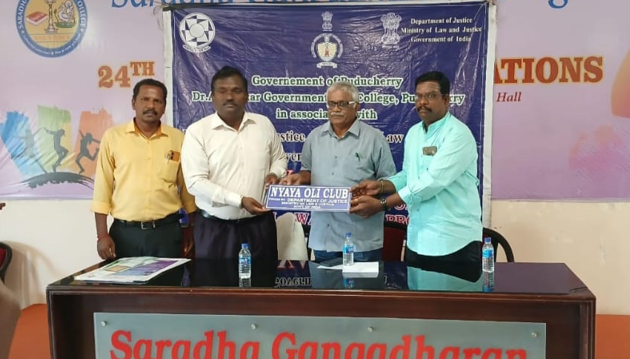 Saradha Gangadharan College and Dr. Ambedkar Govt Law College jointly organized the inauguration of NYAYA OLI CLUB under NYAYA OLI PROJECT on 21-07-2025 in Saradha Gangadharan College. The Co-Ordinator of NYaya Oli Project Dr. S. Vijayan was the chief guest. Asst. Prof. of Law College Dr. A. Jagan was the special guest.